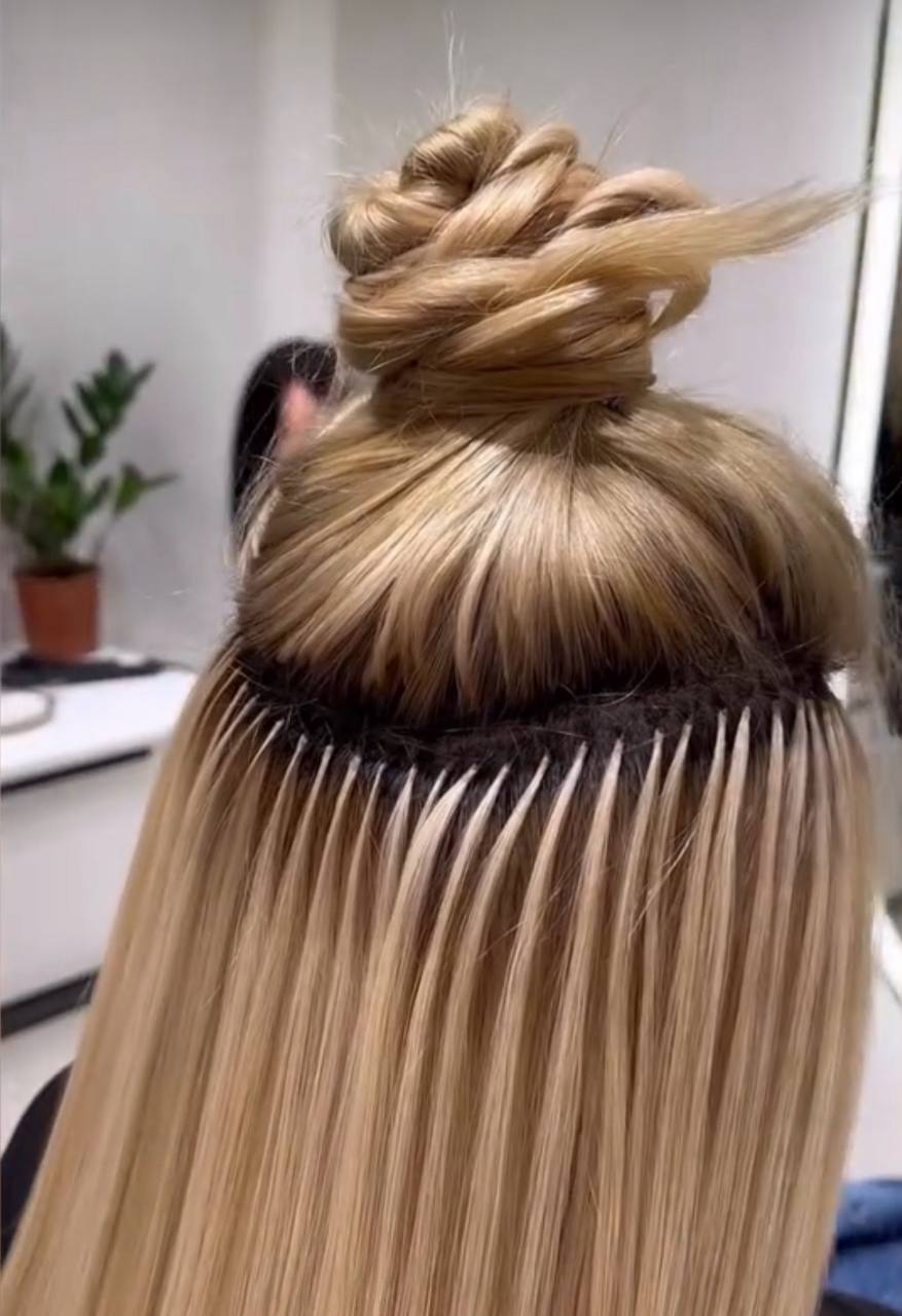 Наращивание волос — это косметическая процедура, при которой к натуральным волосам клиента добавляются дополнительные пряди. Благодаря этому волосы становятся длиннее, гуще и более объёмными.
